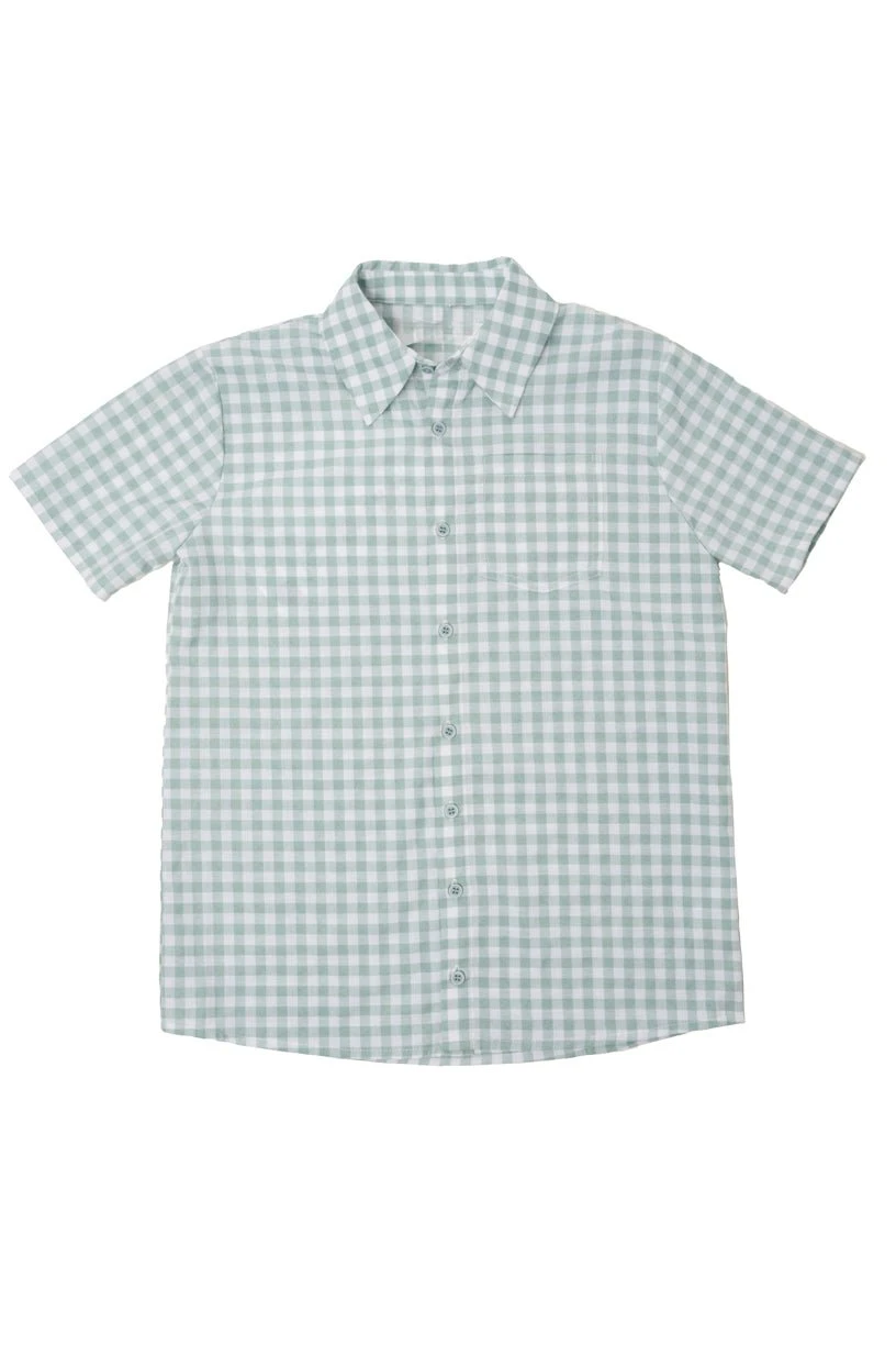 green gingham button up shirt