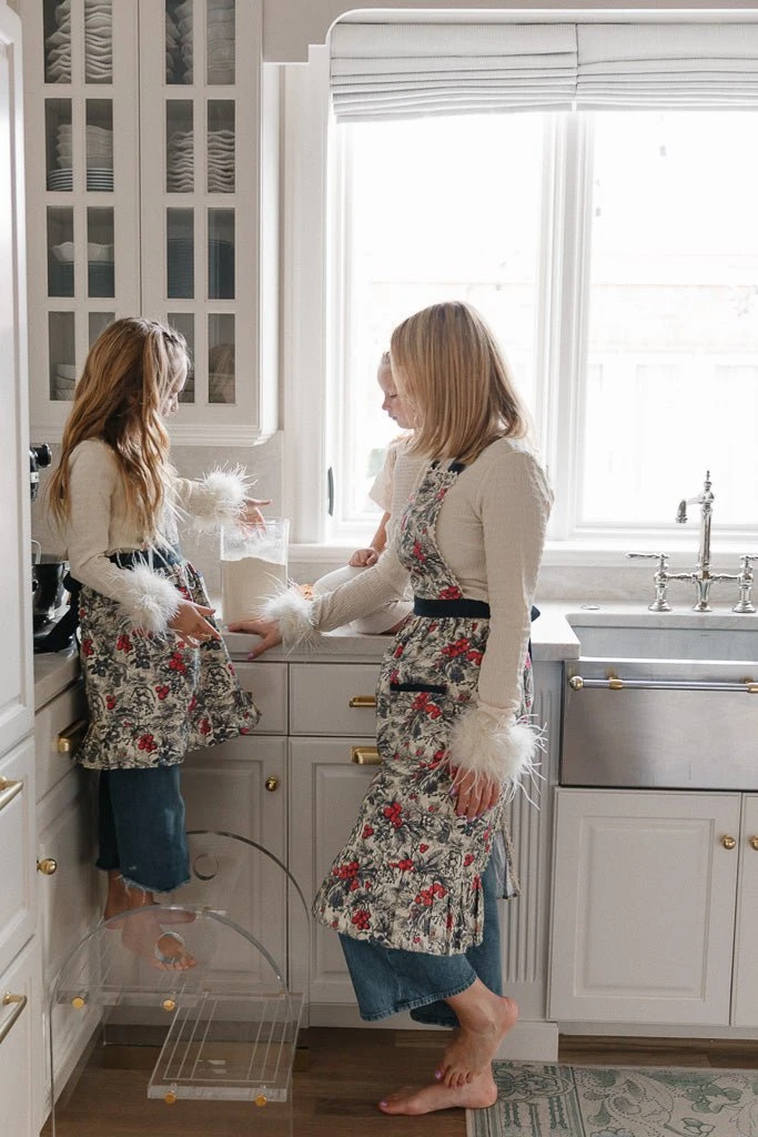 cream floral cotton canvas apron