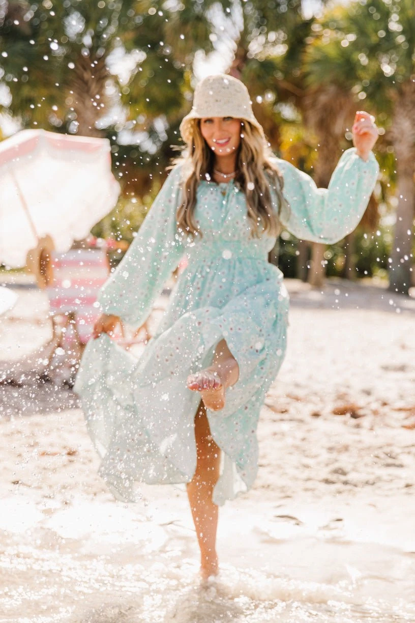 blue floral long sleeve maxi dress