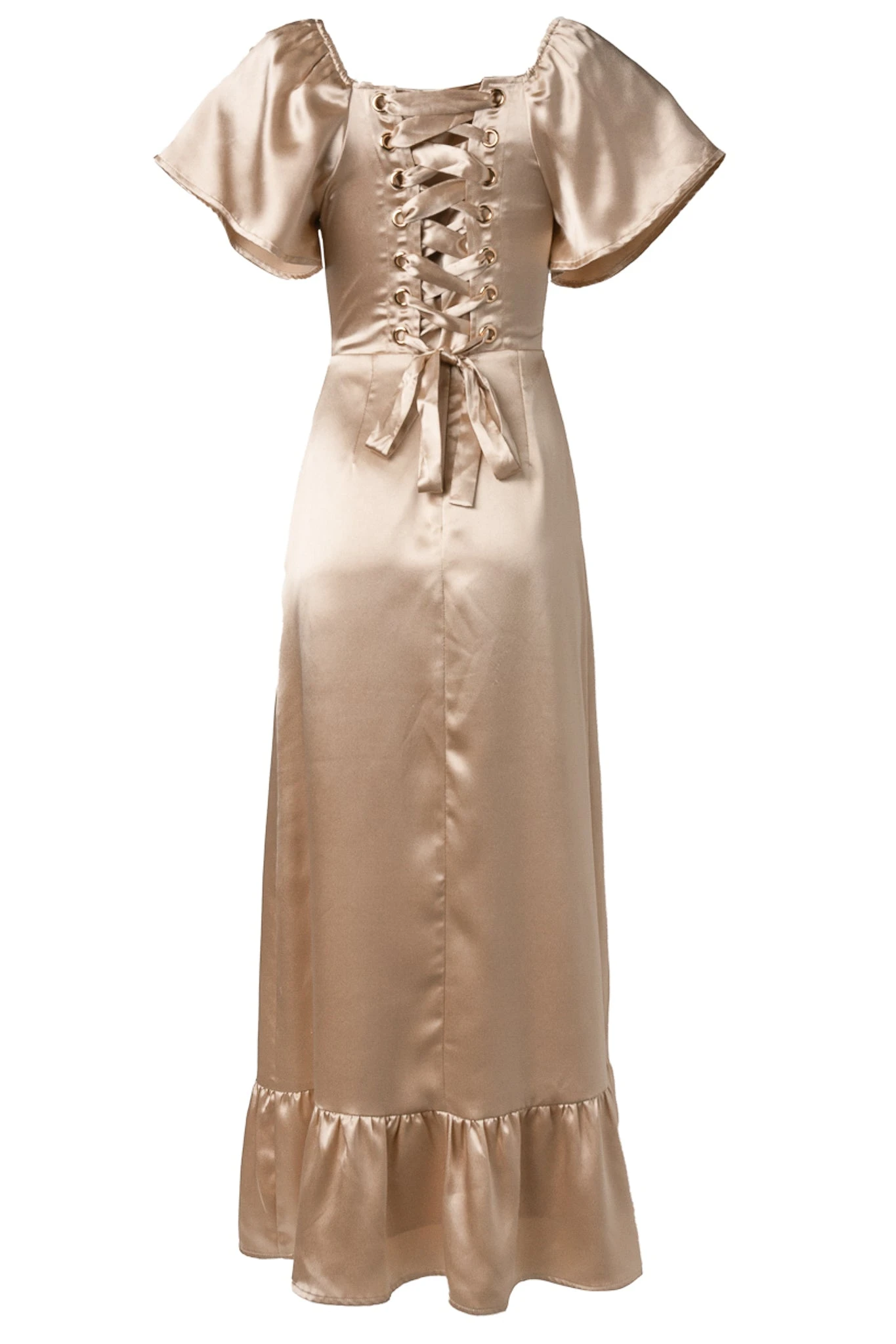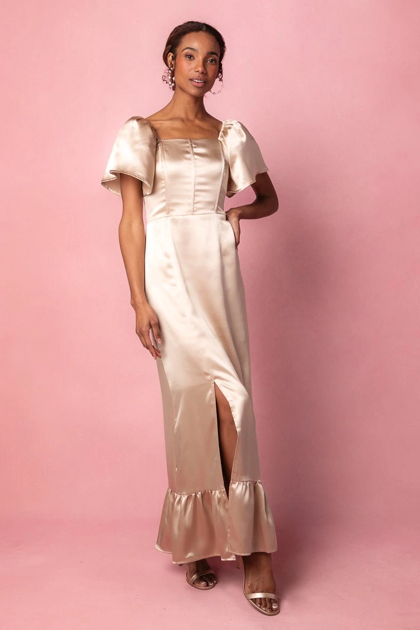 champagne satin maxi dress