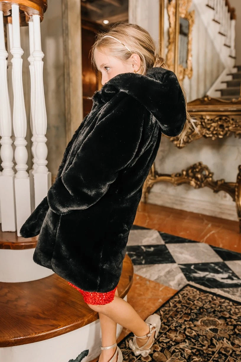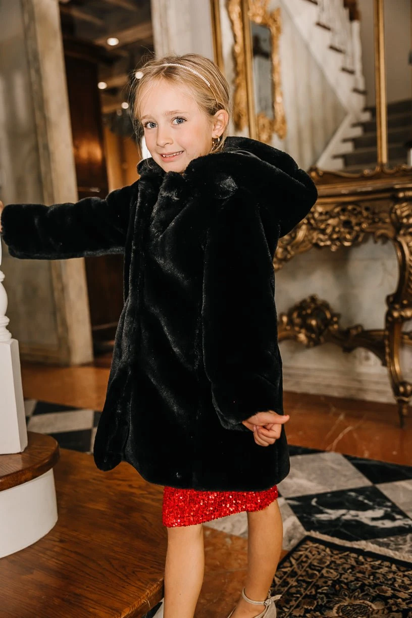 black faux fur removable hood coat