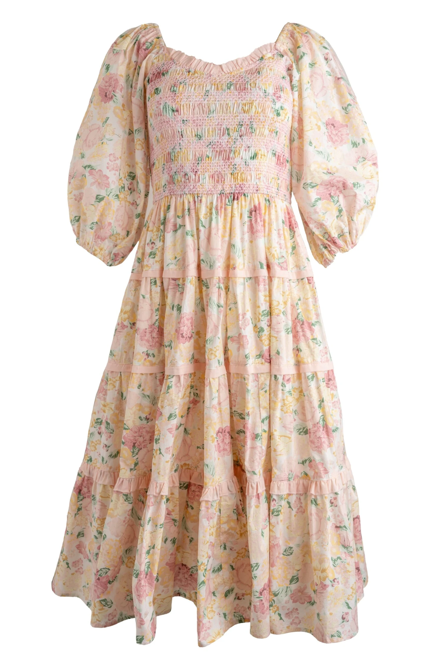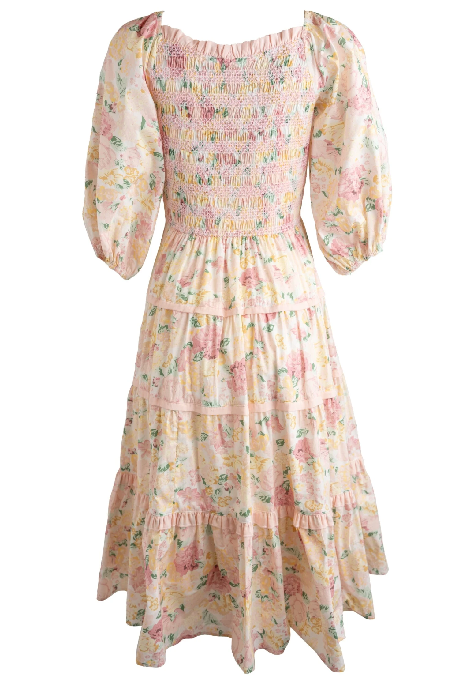 multicolor cotton smocked midi dress
